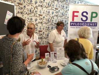 Neben den Vorträgen gab es begleitend zur Veranstaltung eine Wohnprojektbörse auf der sich verschiedene Wohnprojekte und Initiativen für alternative Wohnformen vorgestellt haben. Bei der Wohnprojektbörse war auch der FSP Pflegedienst mit einem Infostand vertreten. Wir haben dort über die Möglichkeiten der Unterstützung zu Hause und auch in Wohnprojekten Auskunft gegeben. Zahlreiche Besucher der Tagung haben die Gelegenheit genutzt, um sich an unserem Stand informieren und beraten zu lassen.